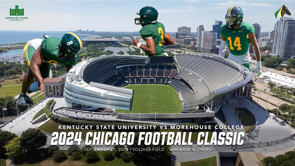 CHICAGO, IL — Kentucky State University Football returns to the Chicago Football Classic on September 21 against the Morehouse Maroon Tigers in Chicago, Illinois. the Frankfort, KY HBCU moves its September 21 home contest against Morehouse College to the historic Soldier Field for the 2024 Chicago Football Classic in Chicago, Illinois.