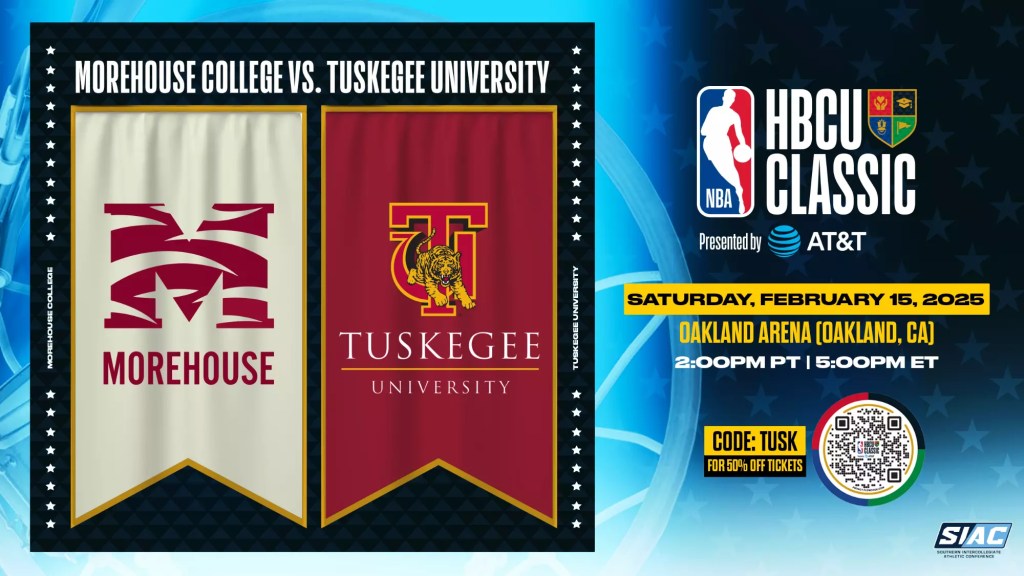 NEW YORK, Oct. 24, 2024 – The NBA today announced that the Morehouse College and Tuskegee University men’s basketball programs have been selected to compete in the 2025 NBA HBCU Classic presented by AT&T as part of NBA All-Star 2025 in the San Francisco Bay Area. The Southern Intercollegiate Athletic Conference (SIAC) conference matchup will take place on Saturday, Feb. 15, 2025, at Oakland Arena. This game, the fourth in the series, will broadcast on ESPN+, NBA TV and TruTV.